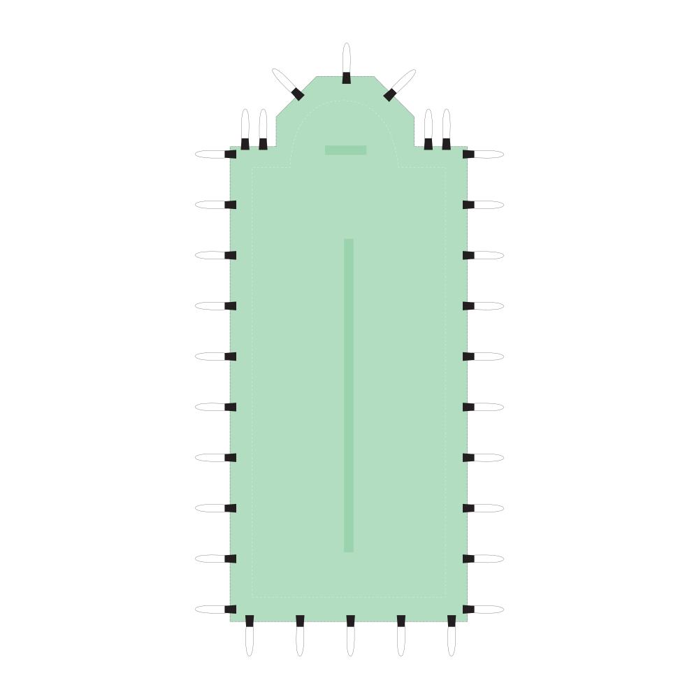 На неразрывной кайме из ПВХ по краям покрытия имеются натяжные ленты Fixkit, которые прикрепляются к бортику при помощи крюков и колец.